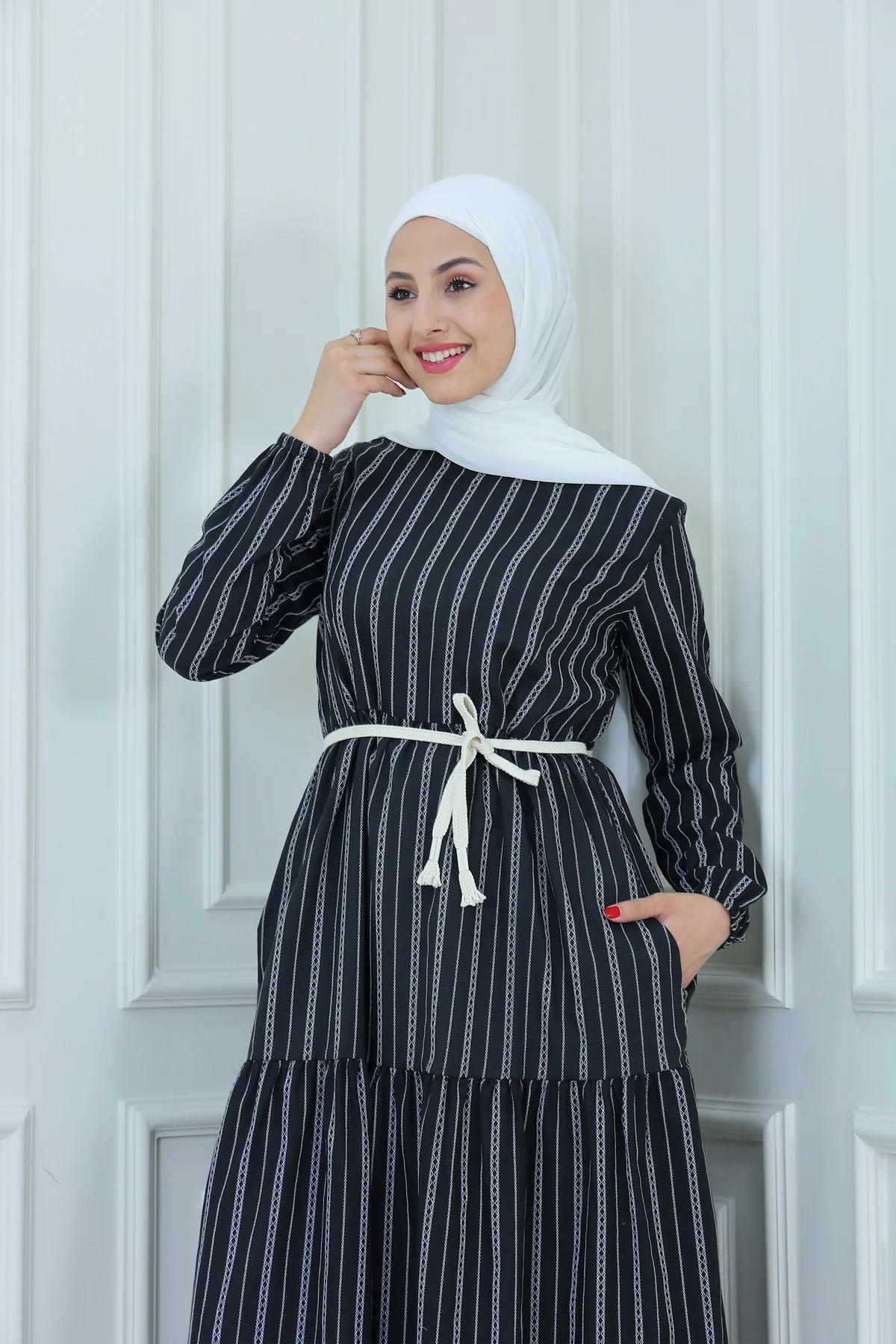 dress blends simplicity with style. The soft fabric and lightweight feel make it perfect for warmer days, while the off-white rope belt adds a charming contrast and adjustable fit.